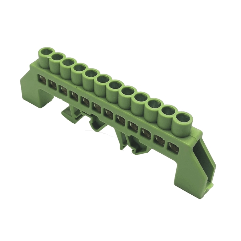 Barra Conexión Bronce Aislado 12P VERDE Riel Din