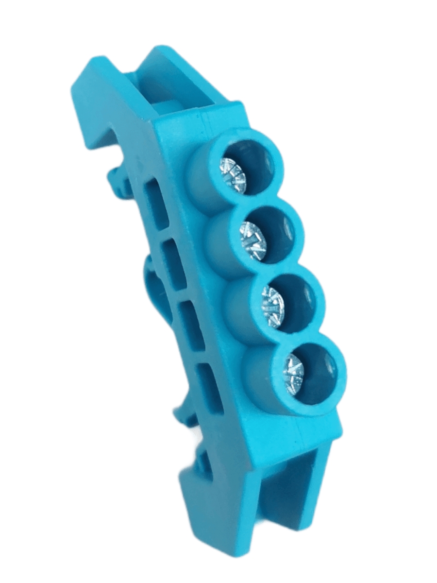 Barra Conexión Bronce Aislado 4P Riel Din – Azul